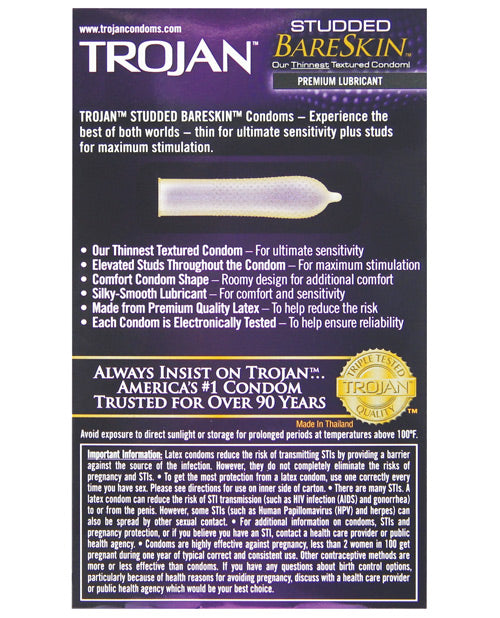 Trojan Studded Bareskin Condoms - Box Of 10